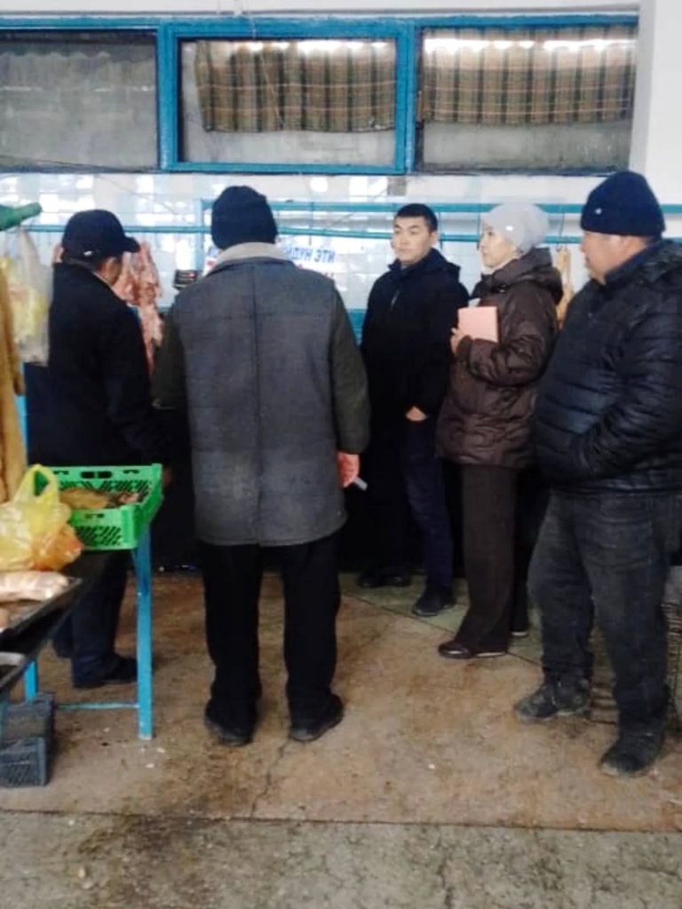 Иш-чаранын алкагында Токтогул шаардык мэриясынын буйругу менен бекитилген комиссия курамы базарларда жана дүкөндөрдө негизги азык-түлүк катары сыпатталган этке, унга болгон бааны бекитилген баадан ашырбоо, баанын өсүү коркунучун алдына алуу боюнча ишкерлик менен алектенген жарандарга түшүндүрүү иштерин жургүзүп, бир катар шарттар макулдашылды.