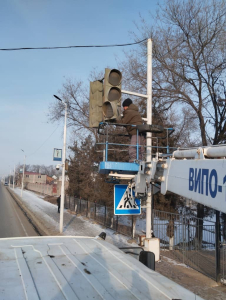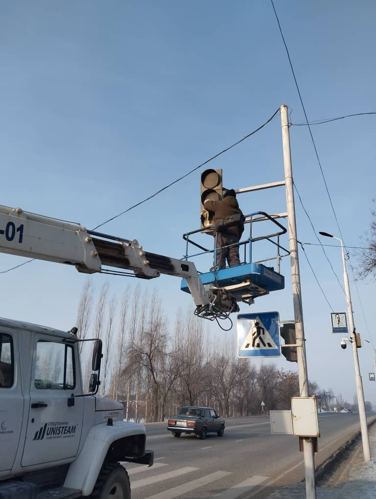 Токтогул шаарында иштен чыккан жол чырактар калыбына келтирилилүүдө