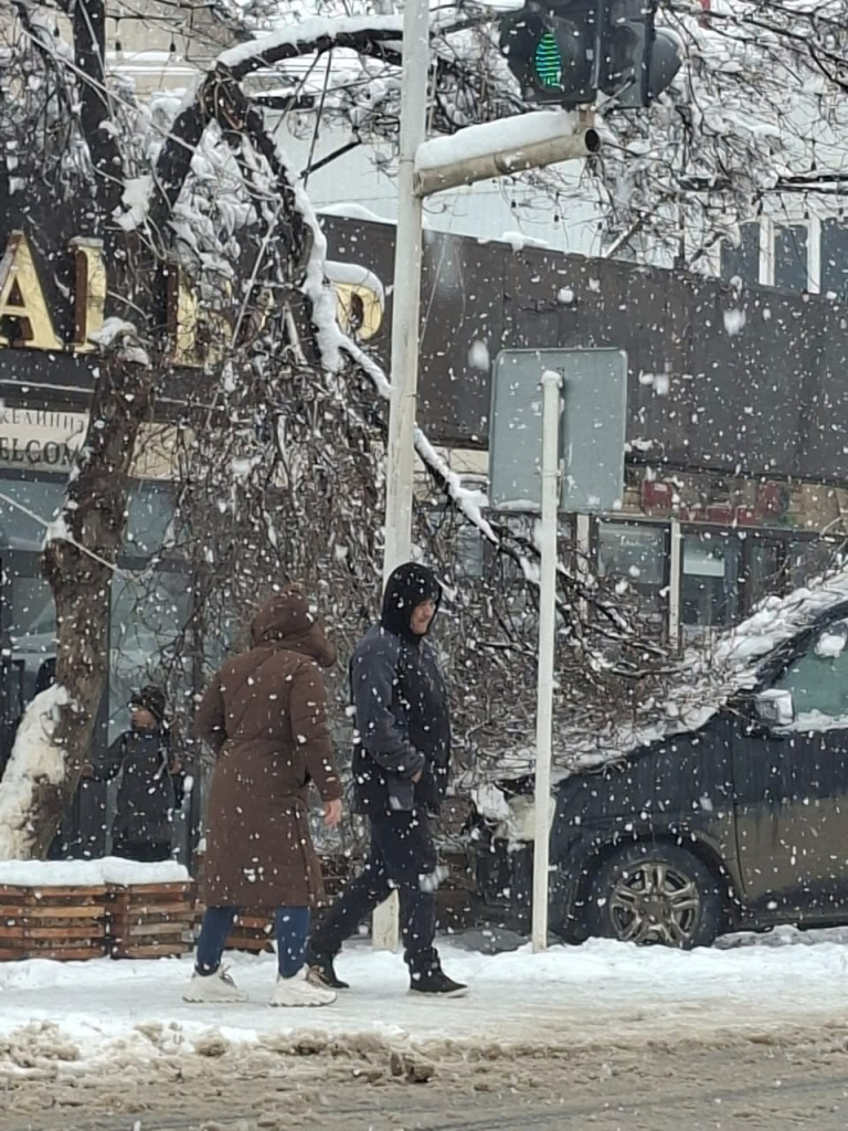Токтогул шаарынын аймагында көчөлөрдү кардан тазалоо иштери уланууда.