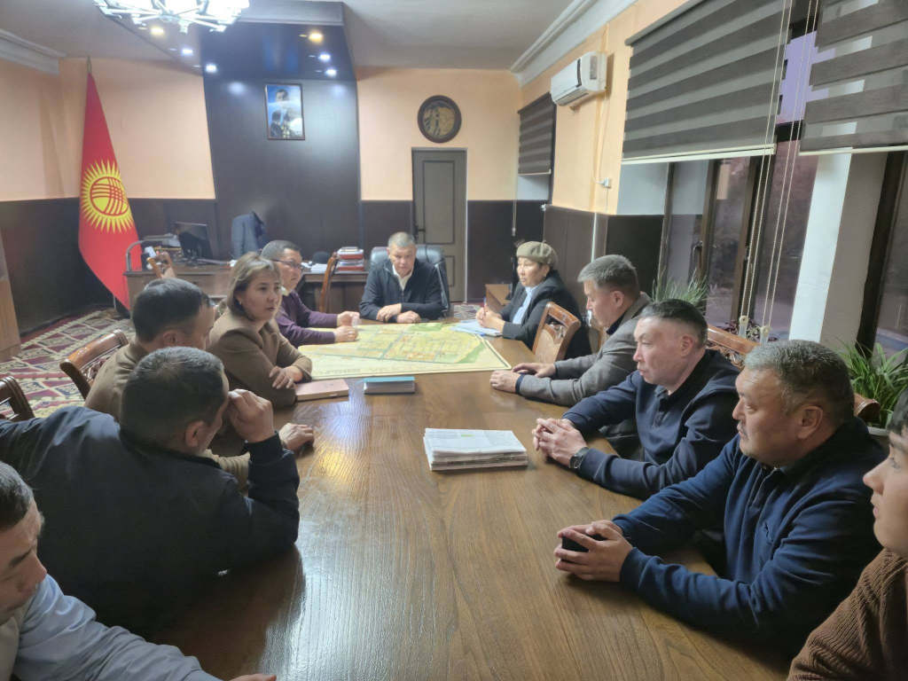 Жыйында Токтогул шаарынын көчөлөрүн кеӊейтүү, мыйзамсыз чегинен чыгып курулган курулуштарды жылдыруу боюнча аткарылып жаткан иш аракеттер талкууланды.
