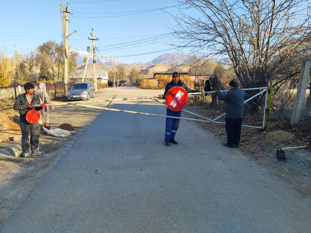 Токтогул шаарынын Кызыл-Туу айылында №4 Н.Биримкулов мектеп гимназиясынын кире беришине шлагбаум орнотулууда.