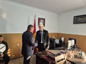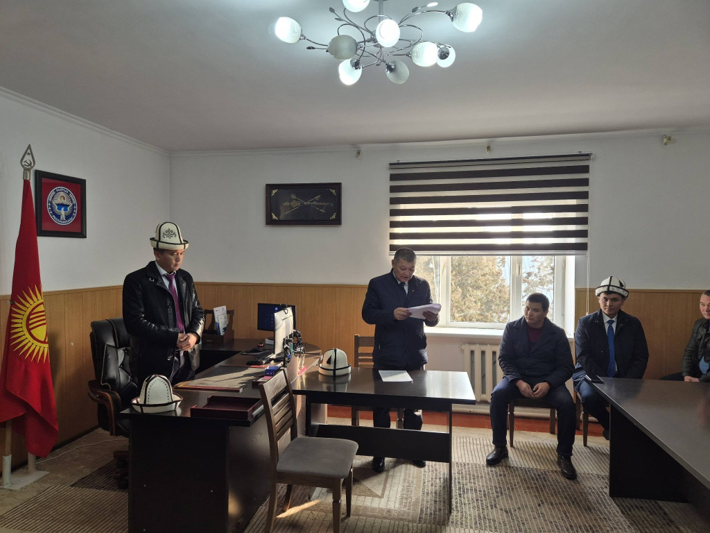 Жаӊы дайындалган кызмат адамдарын Кыргыз Республикасынын Президентинин Жалал-Абад облусундагы ыйгарым укуктуу өкүлүнүн орун басары У.Самаев жана Токтогул райондук мамлекеттик администрациясынын башчысы-акими А.Тюкебаев тарабынан райондун активине тааныштырылды.